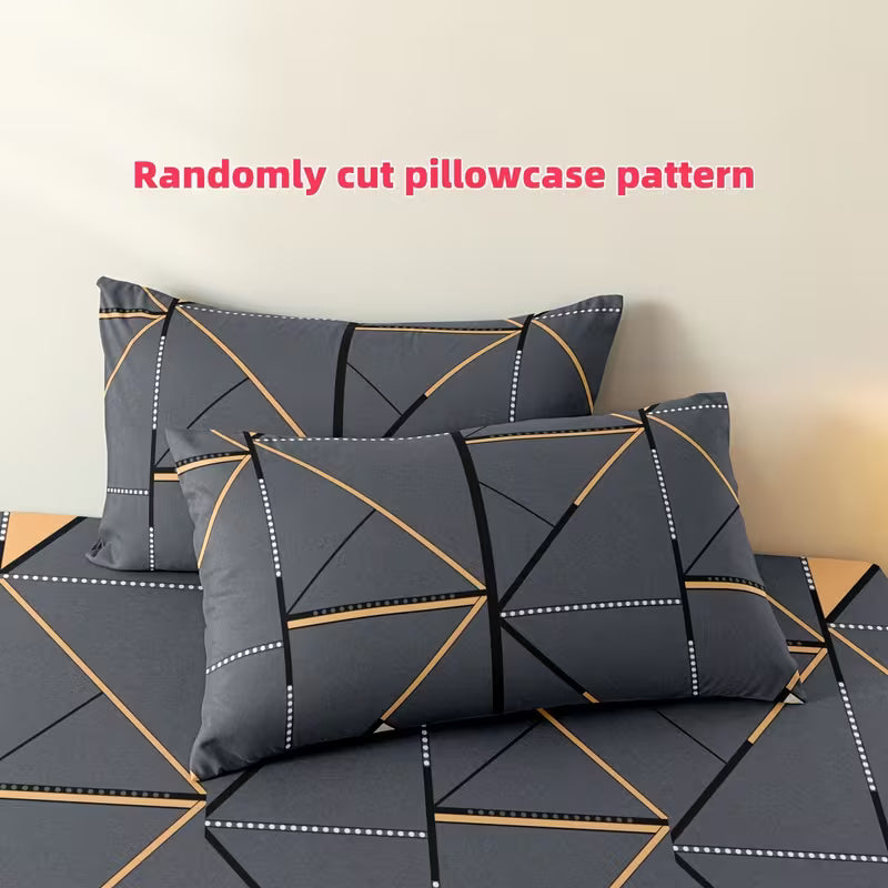 3-Piece Printed Polyester Fitted Sheet and Pillowcase Set for Bedroom and Hotel