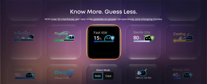 Ever wonder how fast your phone is actually charging? Now you know. The built-in smart display shows live power flow, temperature, and charging status—plus cheerful animations to make waiting less boring. It's not just tech showing off, it's genuinely useful info that helps you understand your devices better.